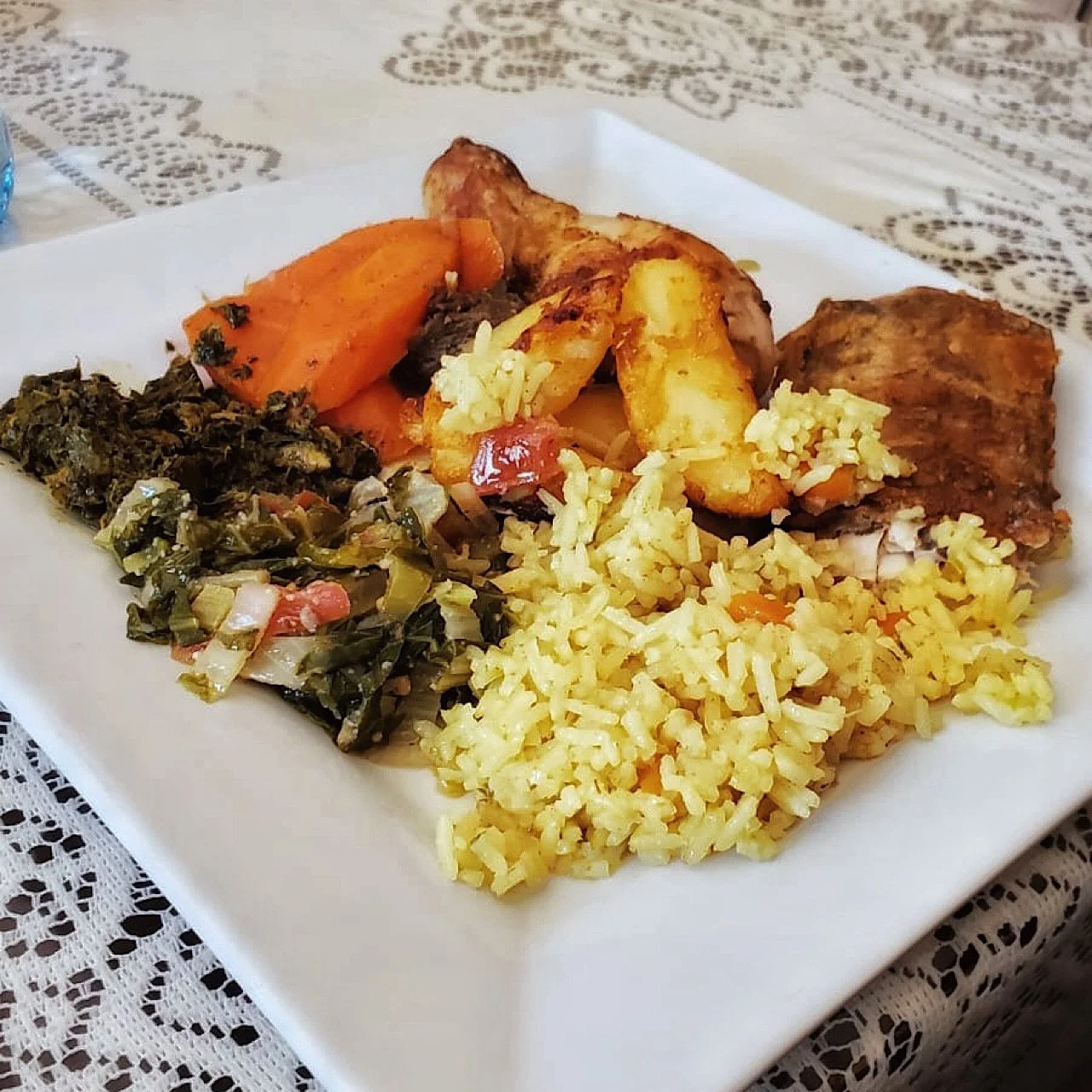 The amisi’s treated us to an amazing lunch with chicken, beef, fish, rice, carrots, greens, and more!
