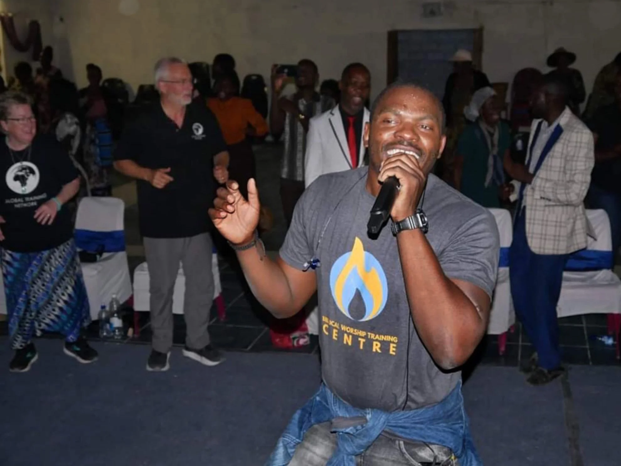 /The final weekend of our three weeks in Namibia, we were joined by Daniel Mayeya, Nathan Kondowe, Cliff Belemu, and Lusungu Katete, two Biblical Worship Training Centre (BWTC) staff and two BWTC volunteers, respectively. Dan, Nathan, and Cliff are all students of ours, as well. Their purpose was to lead what Percy calls a Worship Warrior Retreat, open to all the churches in Katima Mulilo, designed to edify, but also to whet the appetite for BWTC’s in-depth training which includes many of our classes.